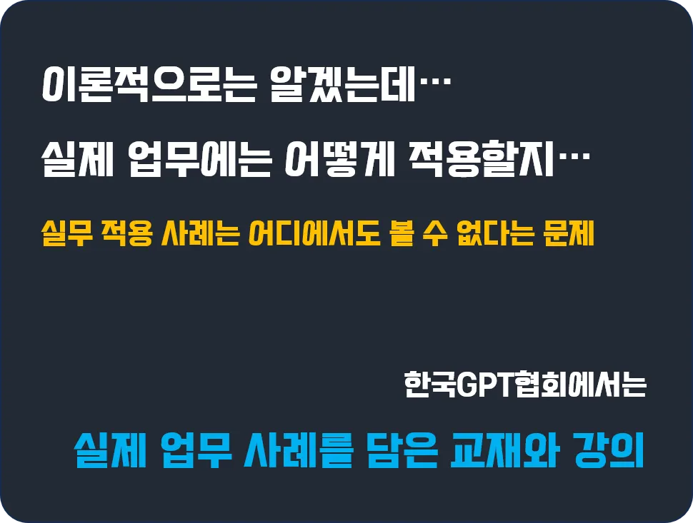 ์ด๋ฏธ ๋ง์ ๊ธฐ์ ๋ค์ด ํ๊ตญGPTํํ์ ๊ต์ก์ ํตํด GPT์ ๊ฐ์ ์ ์ ๋๋ก ์ดํดํ๊ณ ์ค์ ์ ๋ฌด์ ํ์ฉํ๊ณ ์์ต๋๋ค.