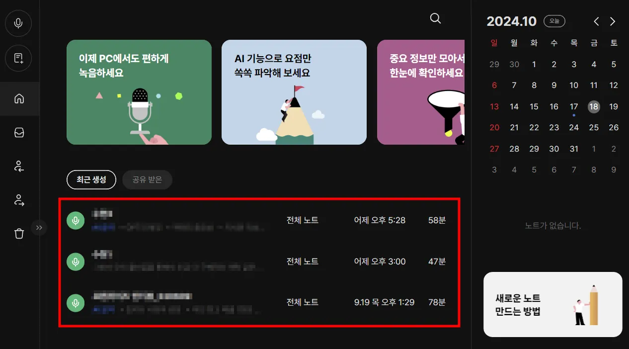PC에서 다시 접속해보면 같은 녹음 파일과 텍스트를 볼 수도 있죠.