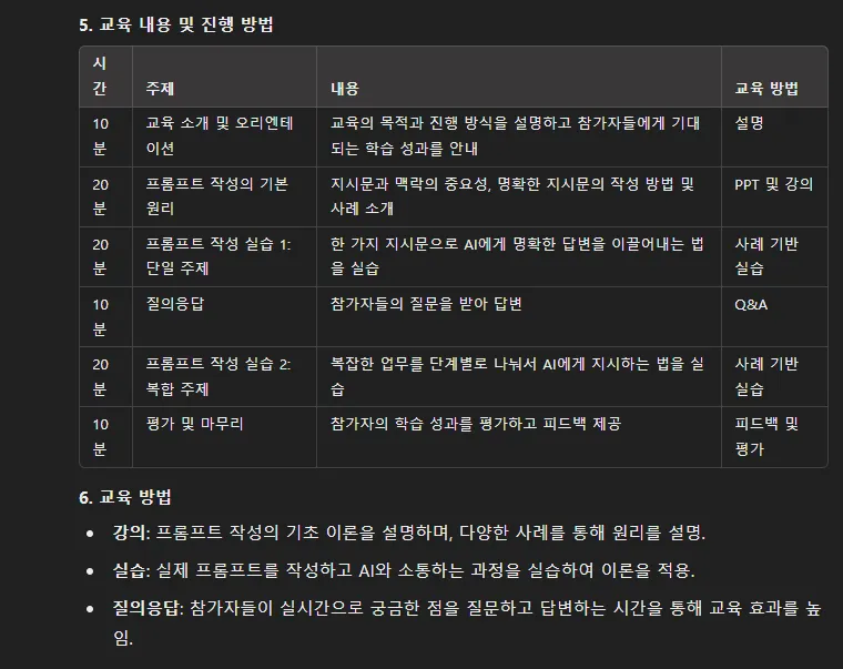 재미있는 교육생분들 앞에서 라이브로 챗 했던거라서 프롬프트에 장난끼가 많이 들어가 있습니다.