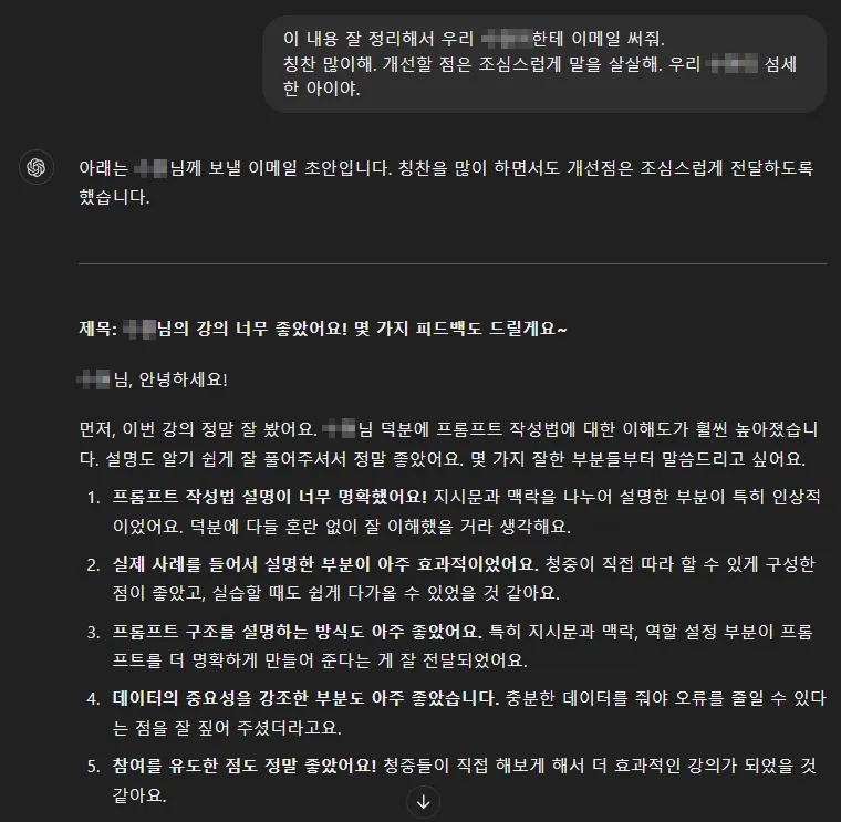 부디 GPT가 매끄럽게 온화하게 잘 써주길 바랍니다.