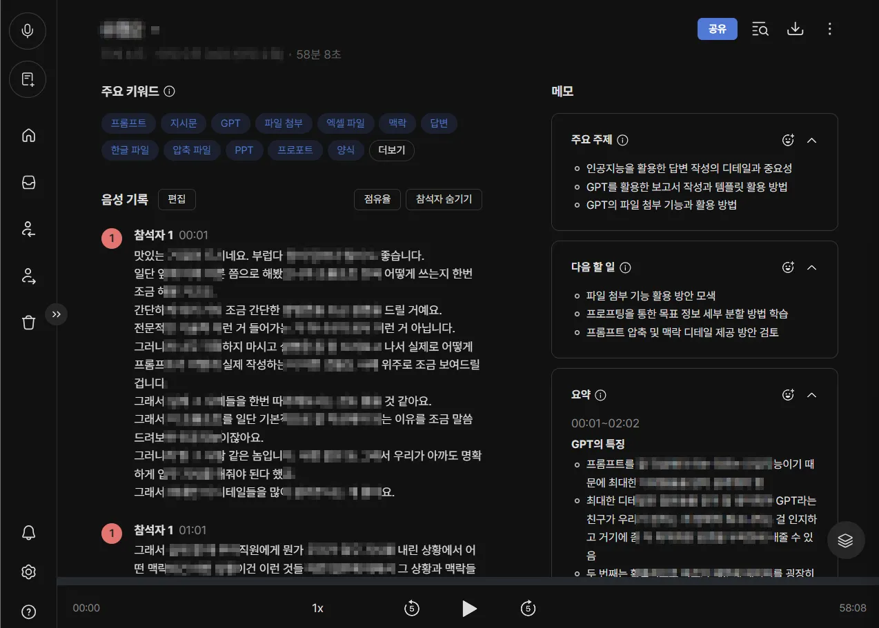 저는 앞으로 이런 일을 할 때는 항상 클로바노트와 GPT를 활용하기로 마음 먹었습니다.