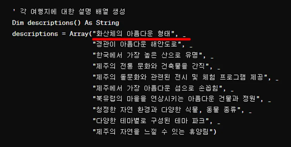 하지만 코드를 유심히 보니, 여행지에 대한 설명이 3개여야 하는데, 제대로 배열을 해주지 않았네요. GPT와 함께 코딩을 몇번 했더니 이제 run을 해보지 않아도 몇가지는 보이는요.