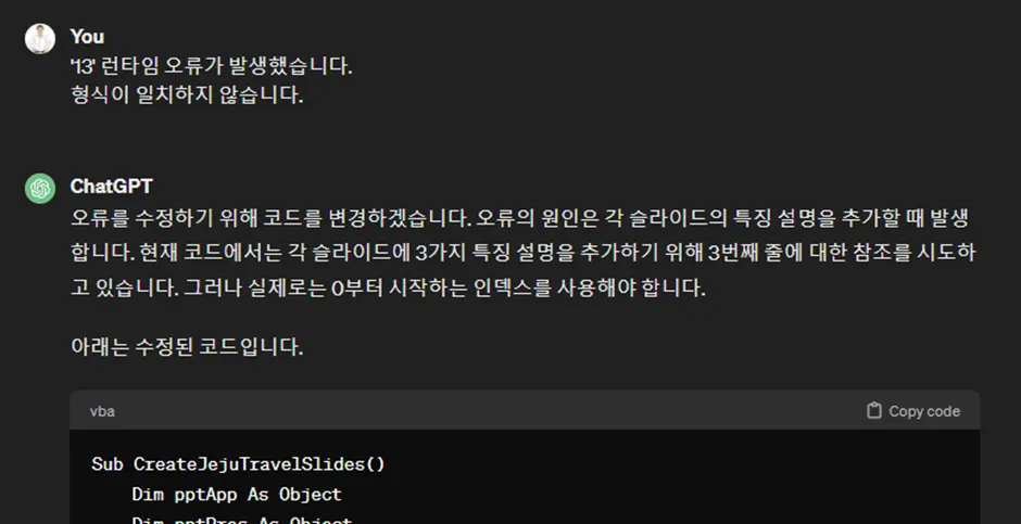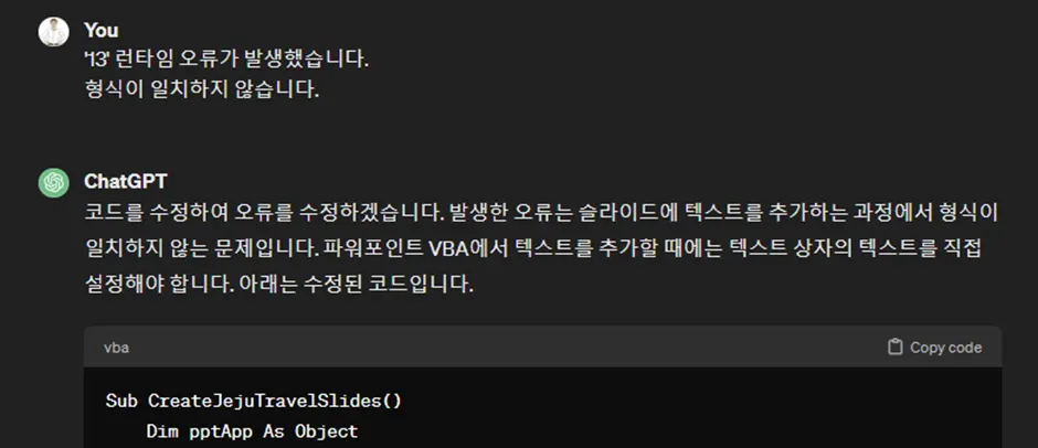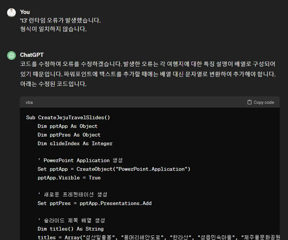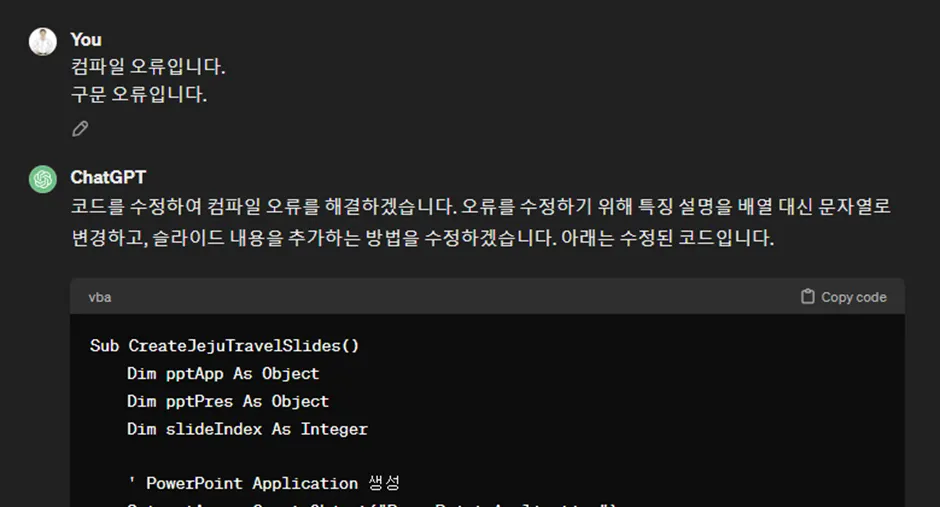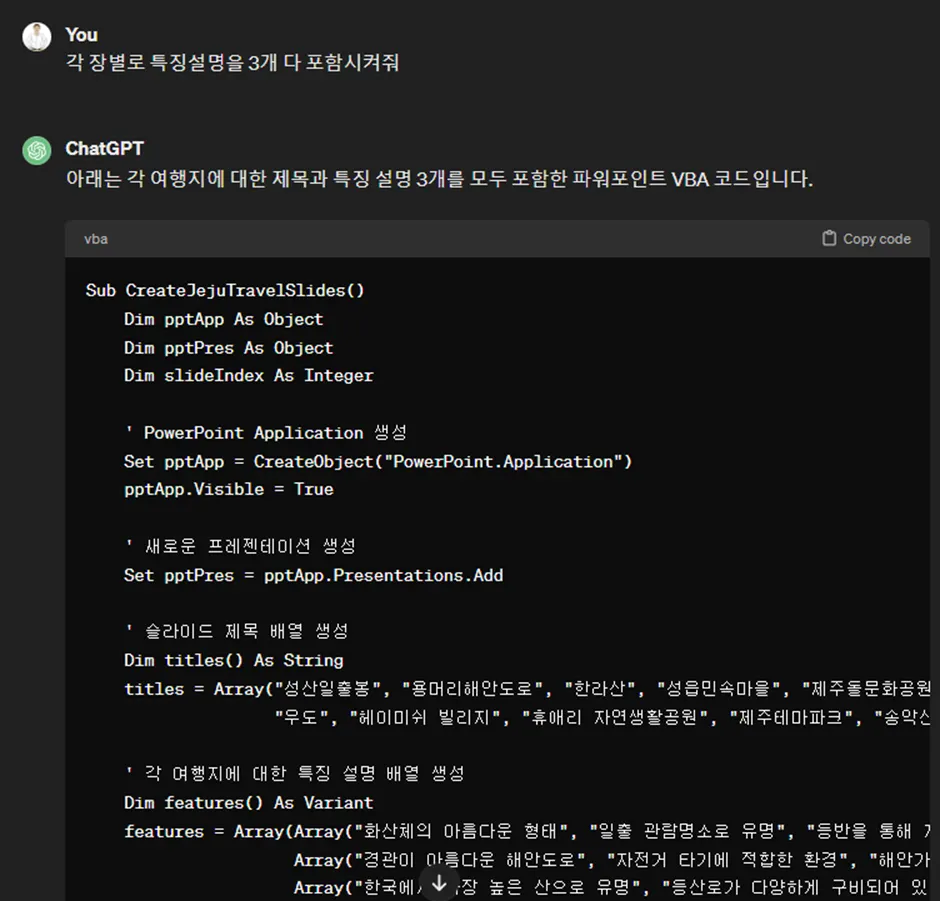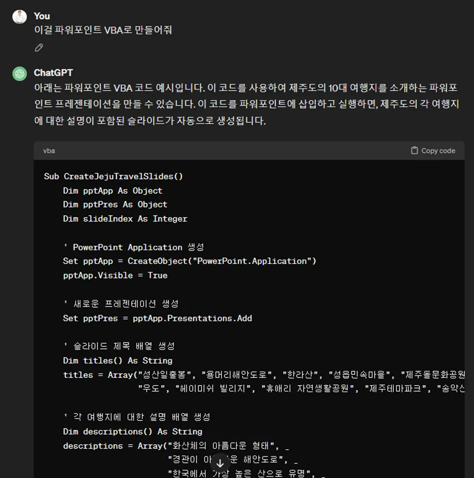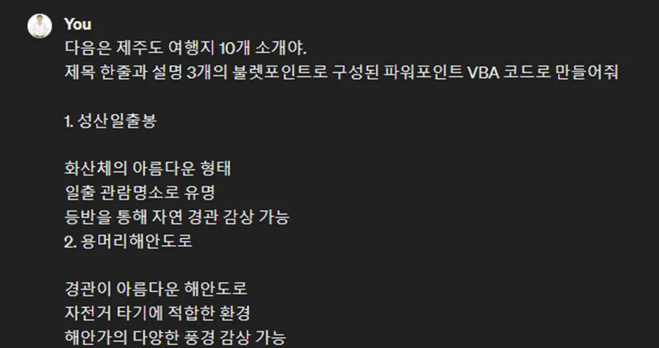 2단계. 이 내용을 챗GPT와 함께 파워포인트 VBA 코드로 바꾼다