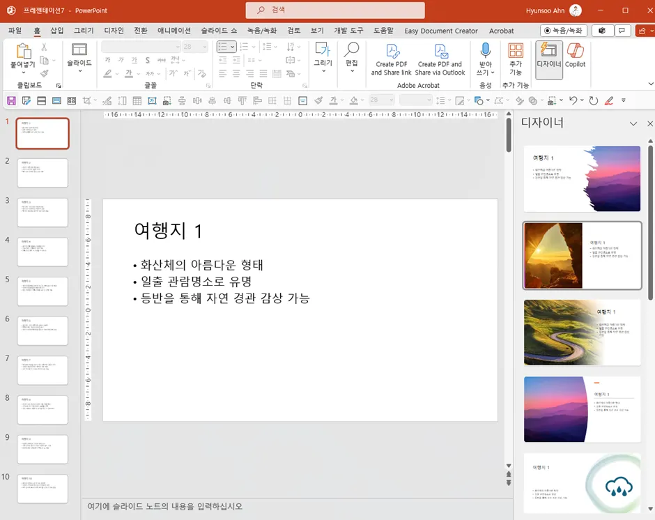 이제 MS designer가 나올 차례입니다. 각 장에 어울리는 이미지를 추가하고, 레이아웃을 예쁘게 만들어줍니다.