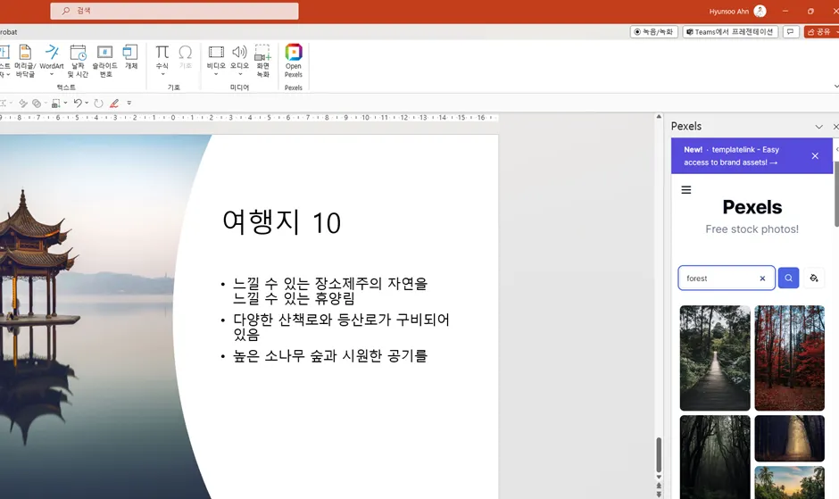5단계. 이미지 더 필요하면 구글링하거나, 추가기능 Pexels 설치한다