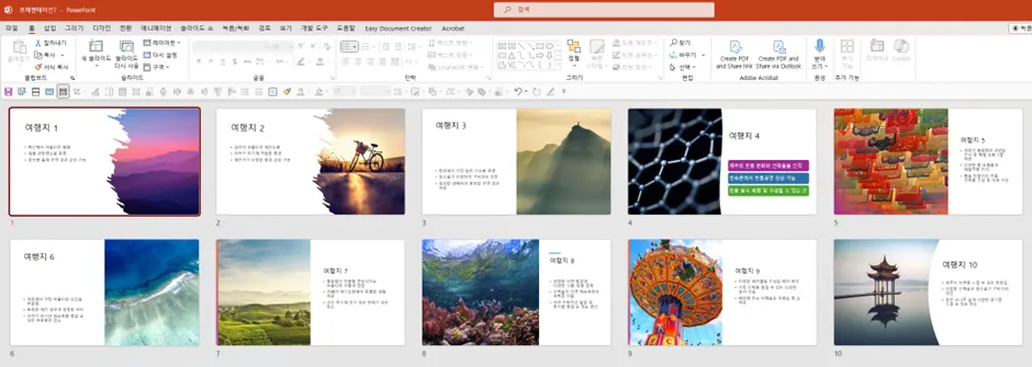 이렇게 VBA에서 지정한 만큼의 슬라이드가 한꺼번에 만들어집니다.