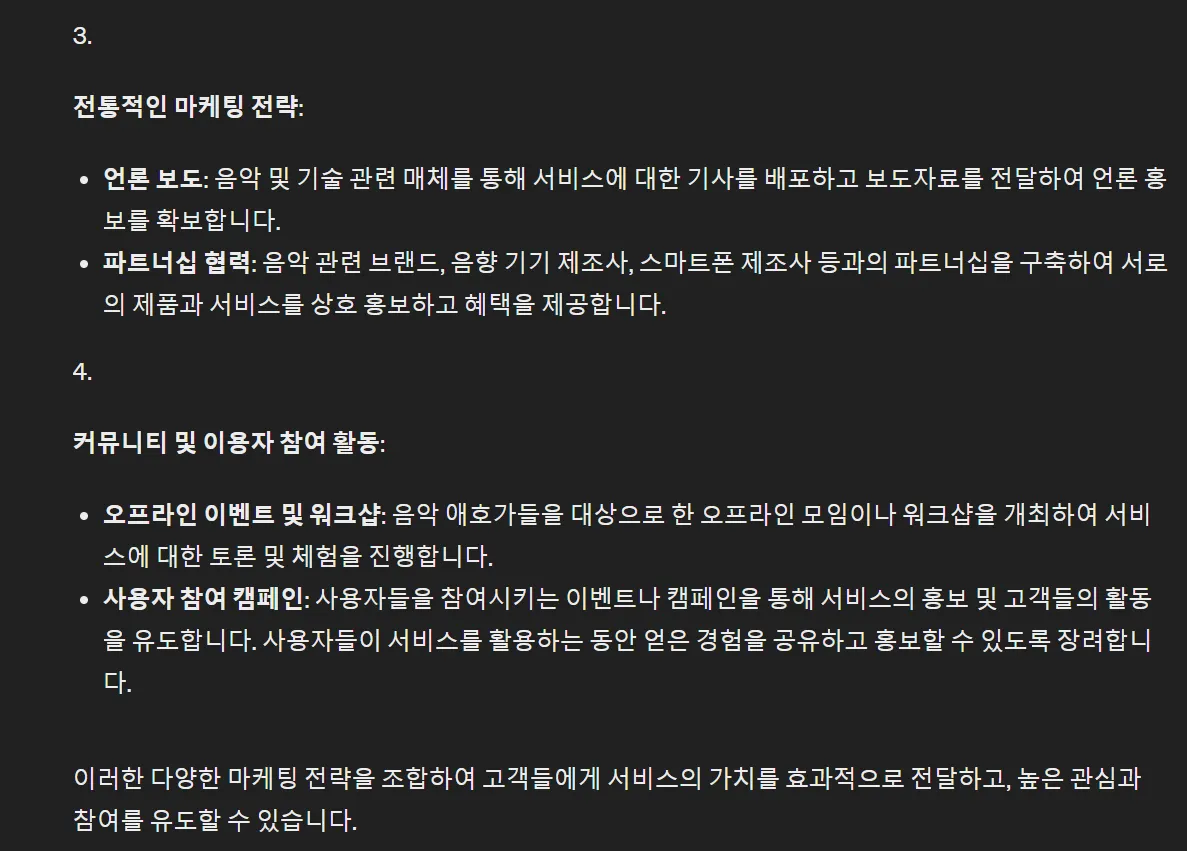 아직 단 하나의 실행도 하지 않은 사업이지만 GPT와의 대화만으로 이렇게 시뮬레이션을 해 볼 수 있다는게 참 좋아요.