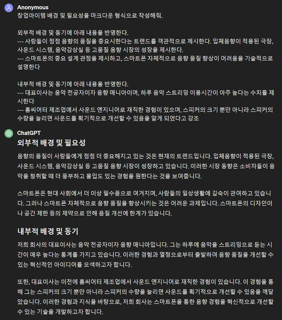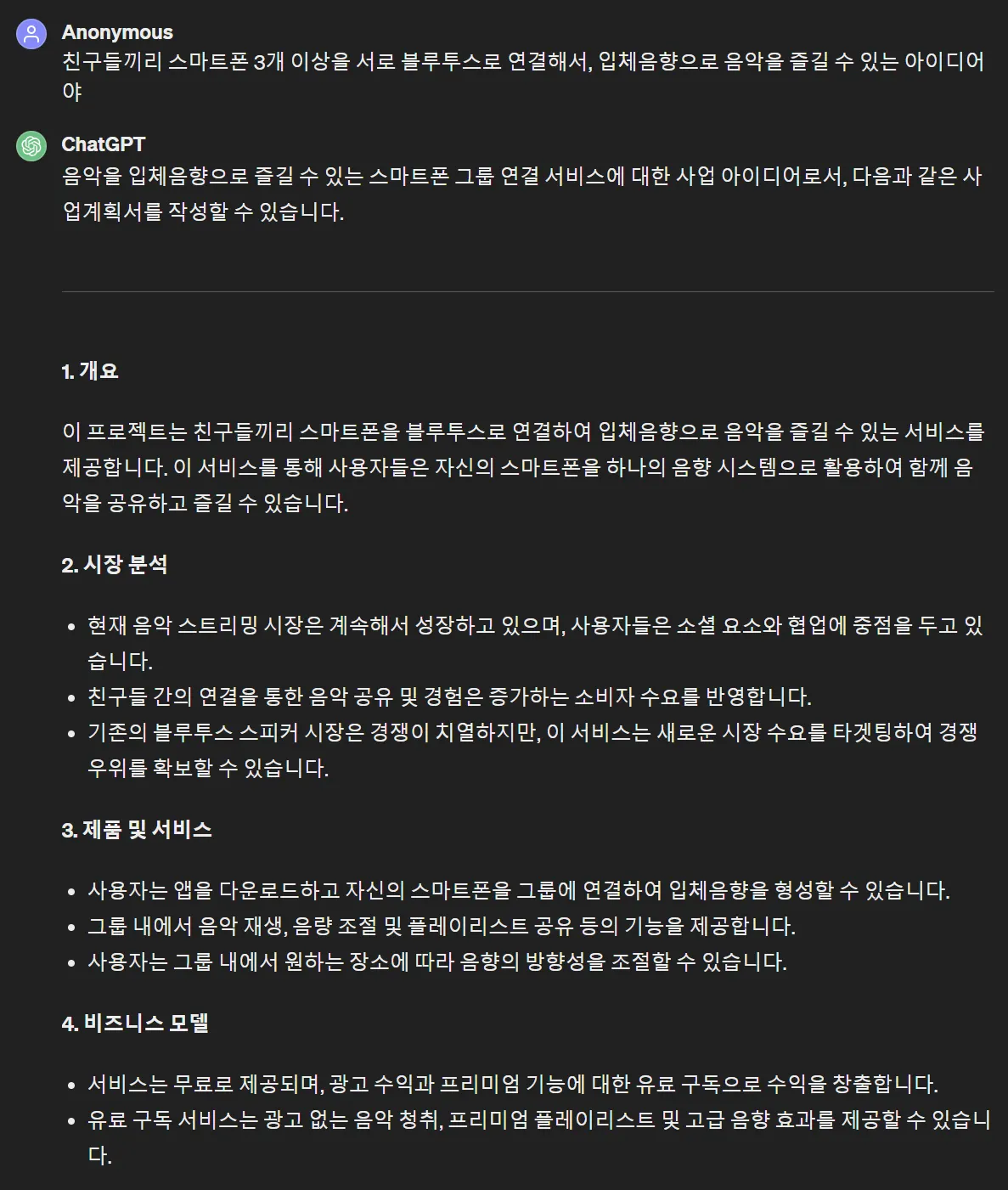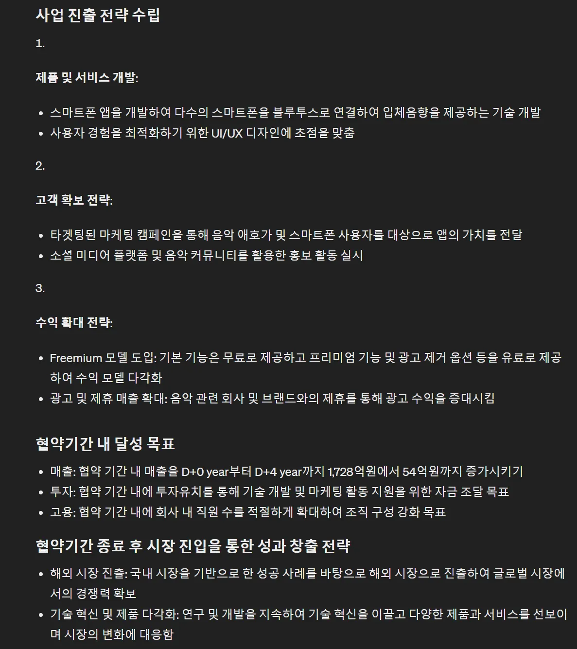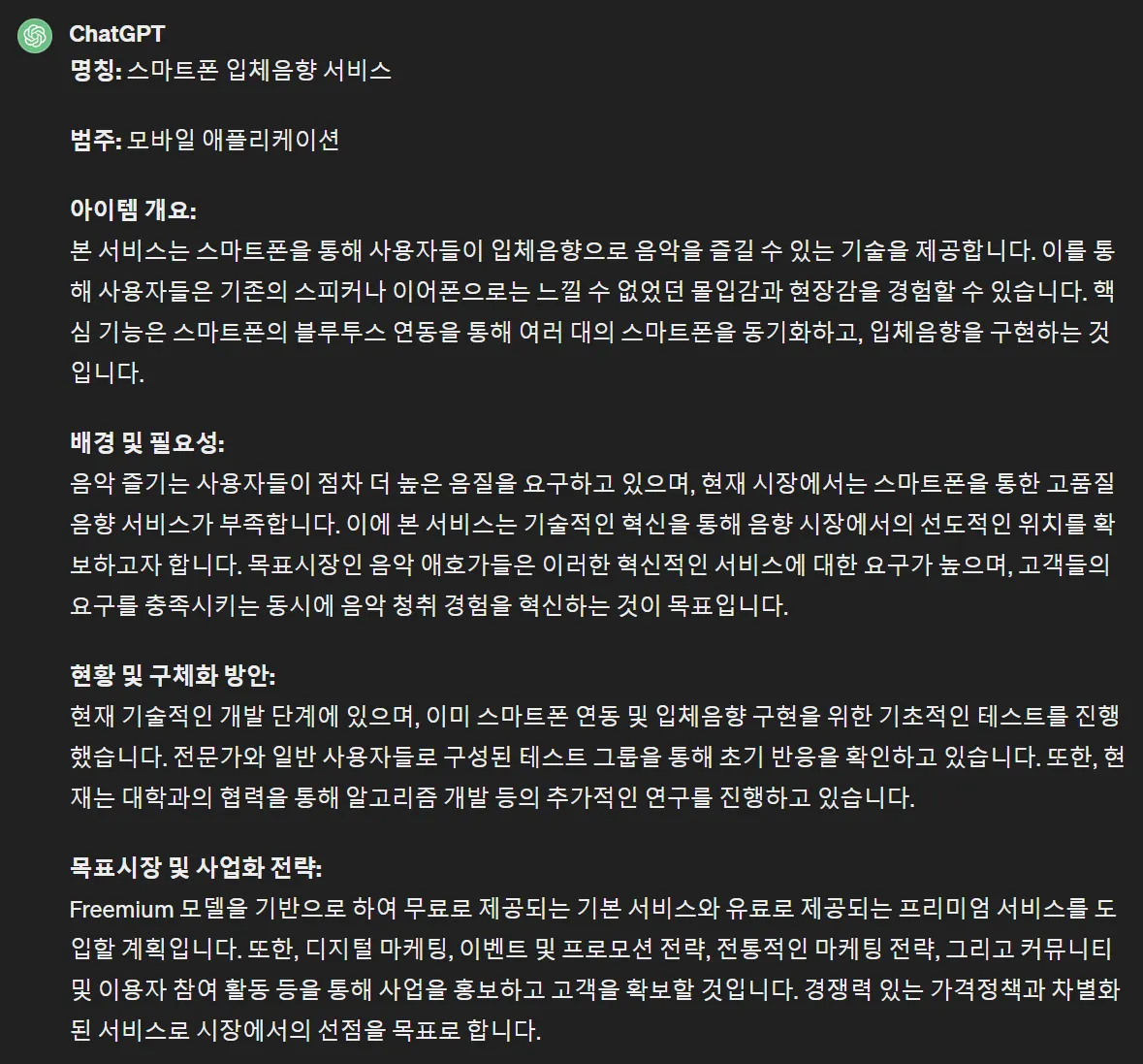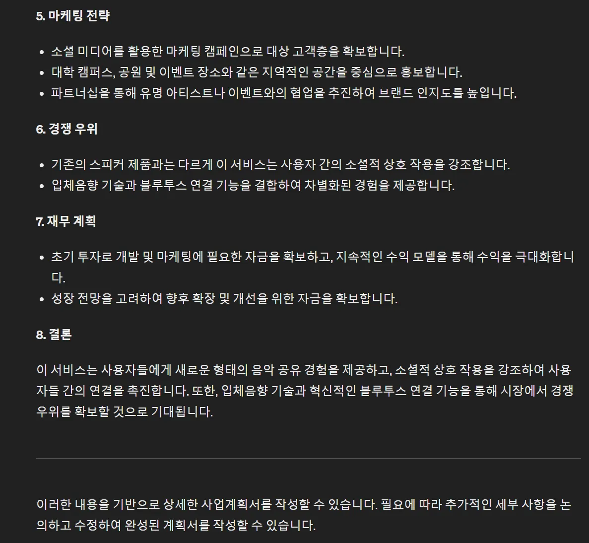 그러면 이대로 이어서 본격적인 사업계획서 문서작성용 글을 뽑아내면 됩니다.