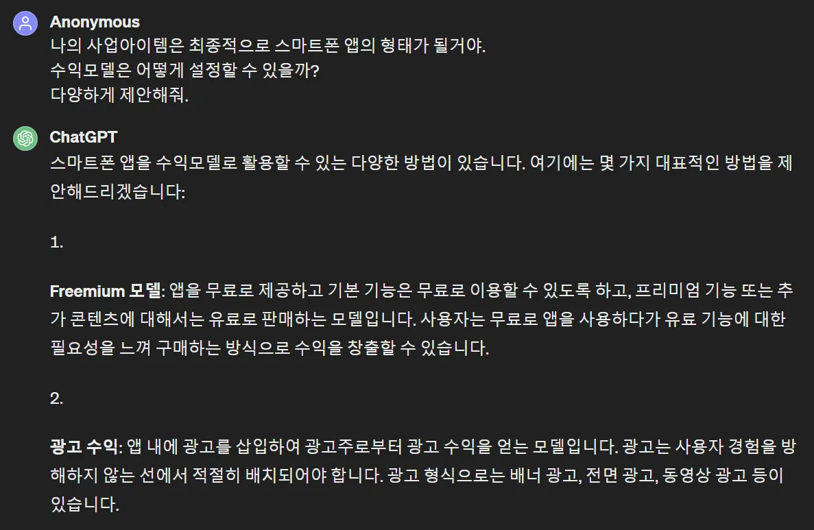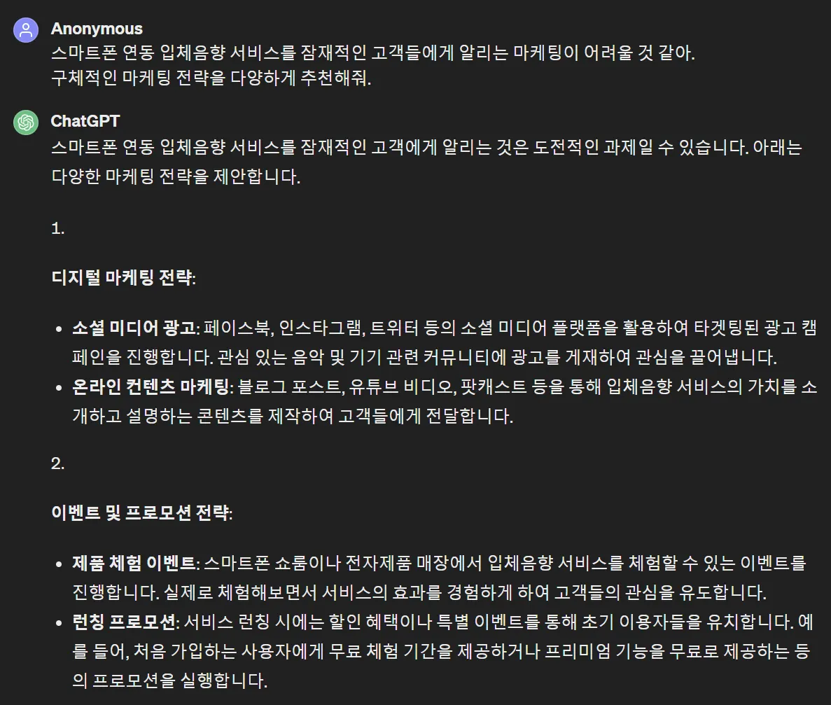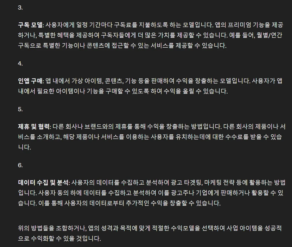 처음 GPT와 대화를 시작하며 신사업의 수익모델을 물어보면 이거보다 훨씬 광범위하고, 그래서 나의 사업에는 딱히 잘 맞지 않는, 그런 이야기를 해줄겁니다.