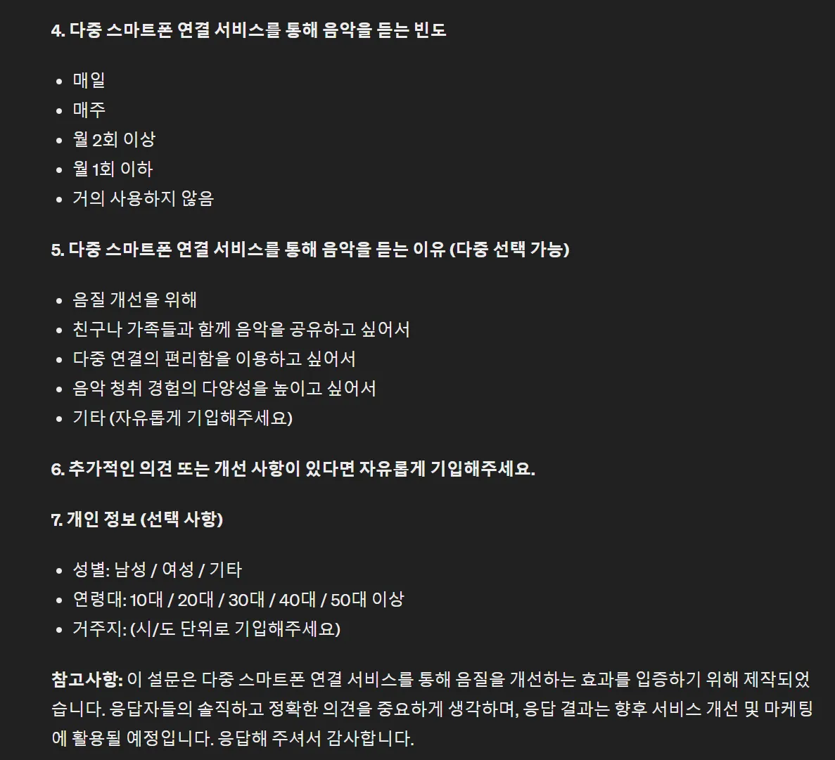 참고해서 설문지를 만들면 되겠습니다. 물론 설문지와 GPT와 함께 만들면 되죠.
