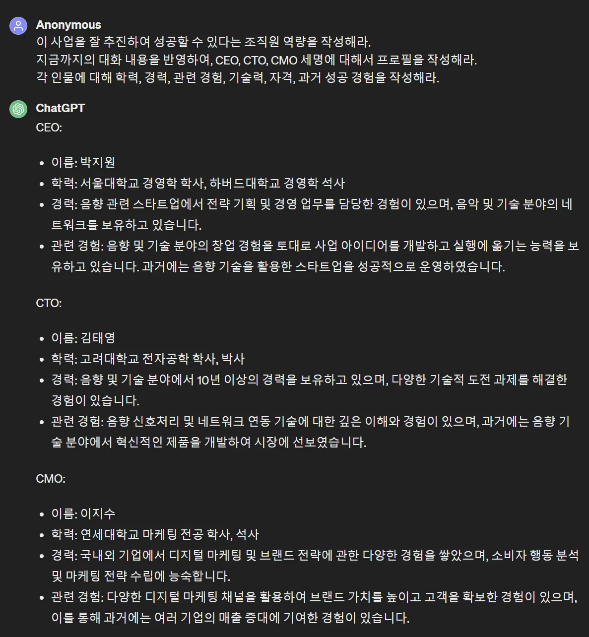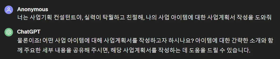1) 사업 아이템 딱 한 줄만 머리에 있는 상태에서 GPT와 대화 시작