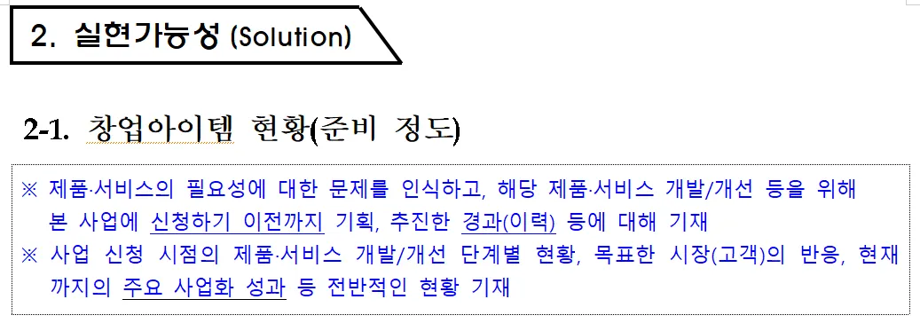 예시를 보면서 “이렇게 작성하면 사업에 필요한 역량이 다 갖추어졌다는 느낌이 드는가?”라고 자문해 보는거죠.