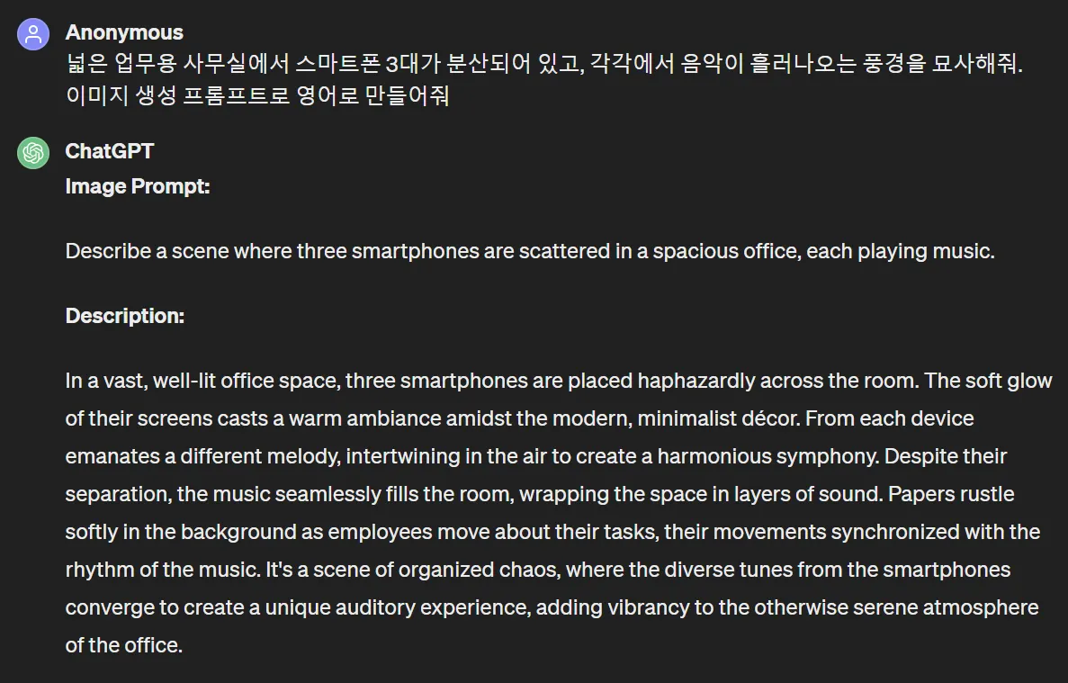다행히 GPT가 뻘소리 한 적이 없고 대부분 대화 주제를 잘 지켜주었기에 평화롭게 왔습니다.