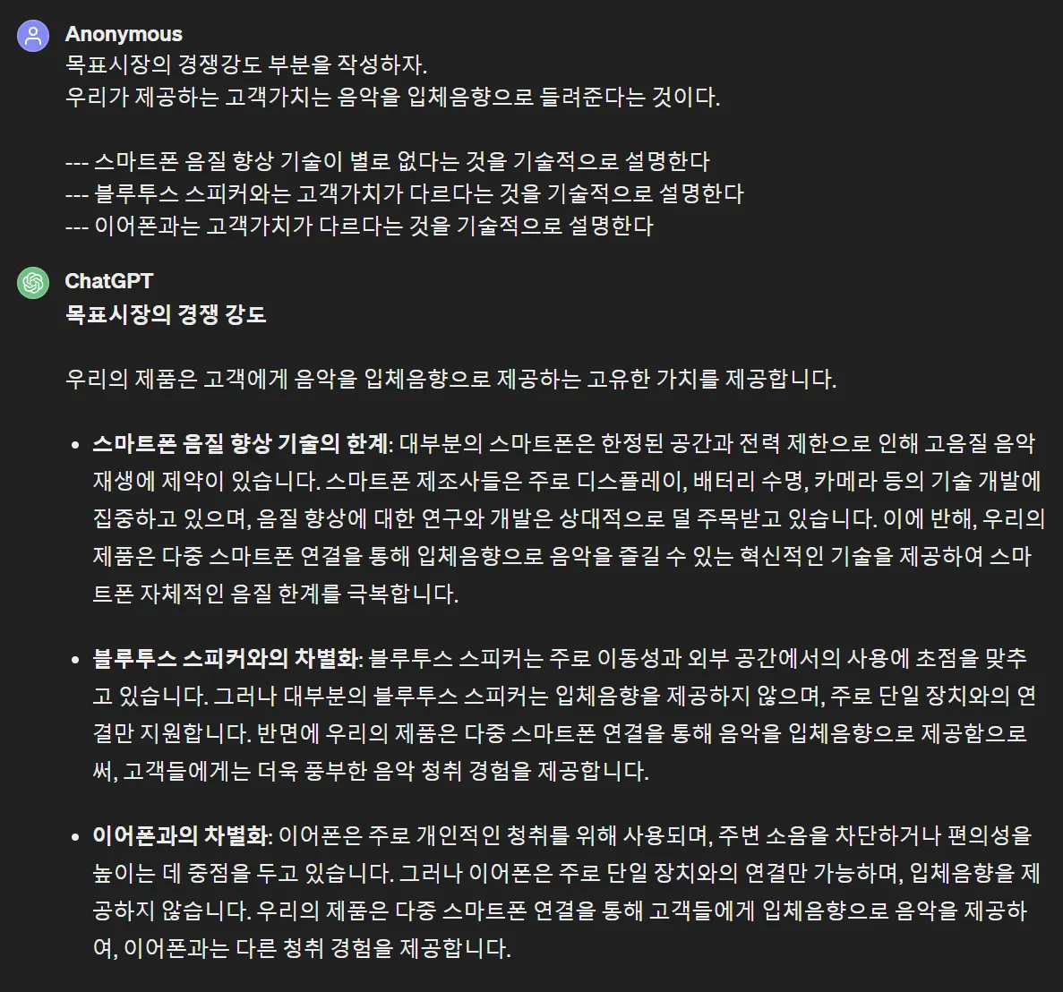 GPT가 써 준 글을 보니 ‘목표 시장의 경쟁 강도’ 부분은 좀 허전합니다.