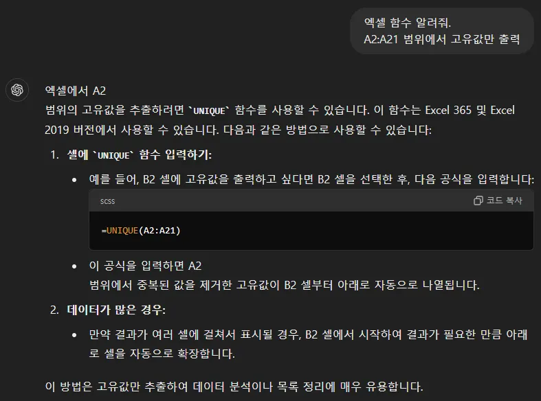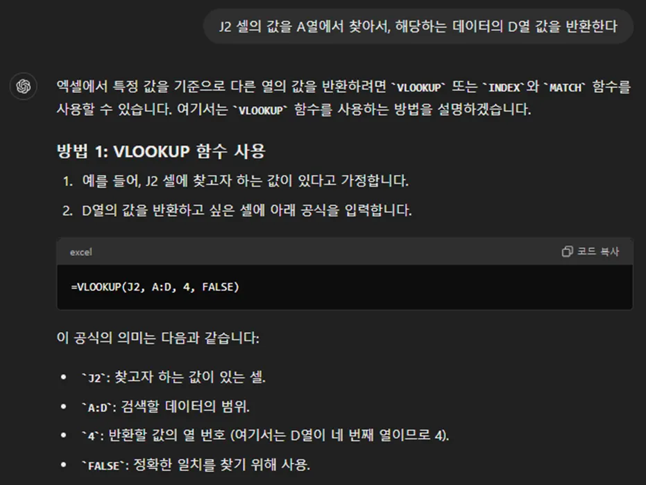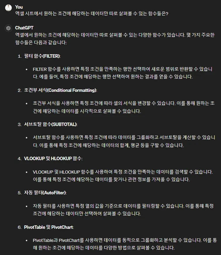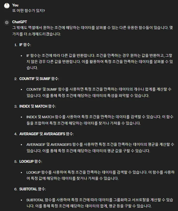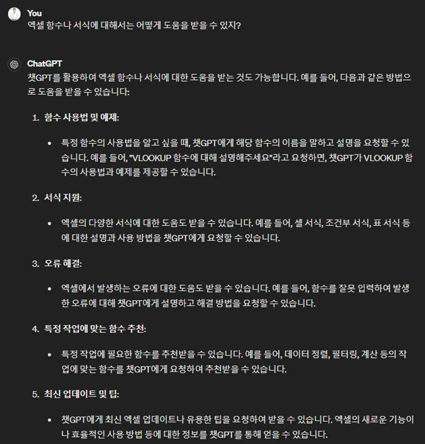챗GPT는 함수와 서식에 대해서도 전문가입니다.