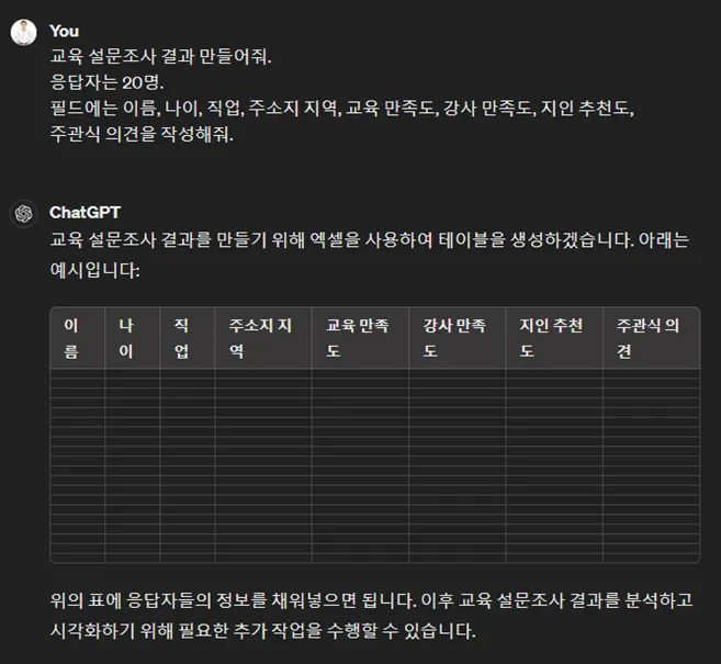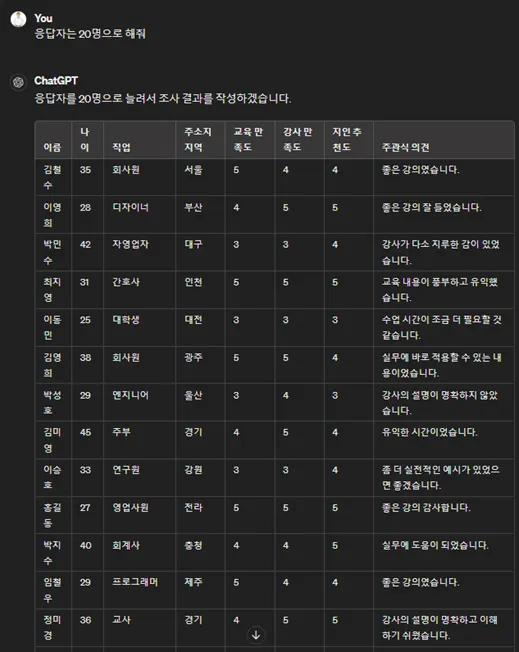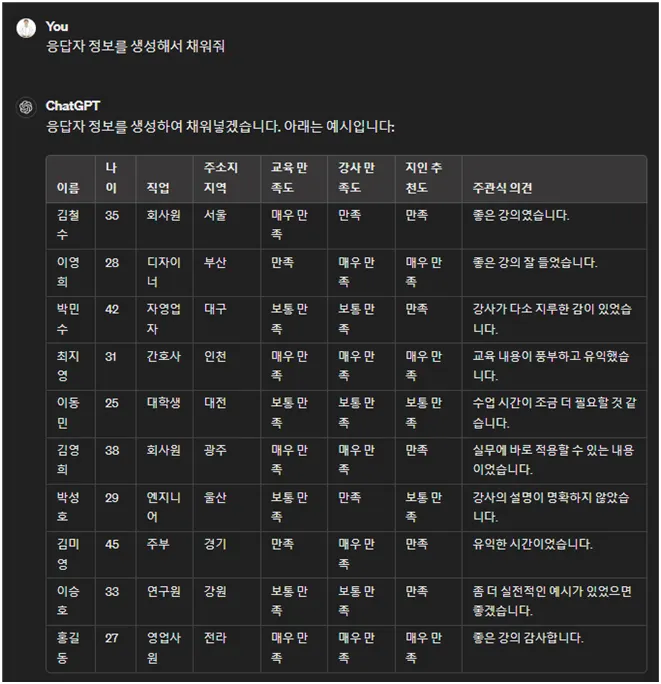 데이터 분석 연습을 위해 필요한 샘플 데이터마저 GPT로 만들겠습니다.