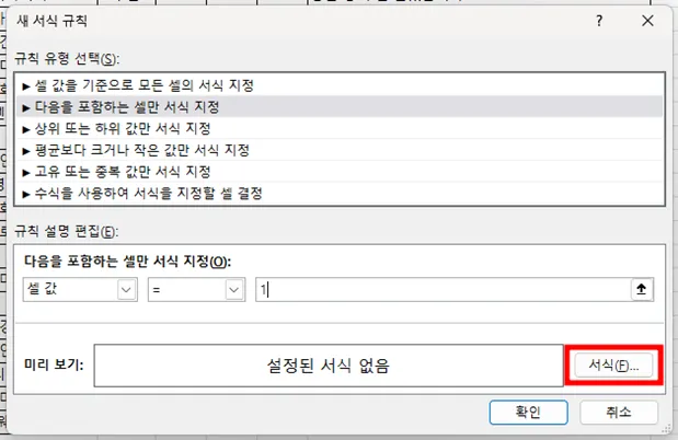 어떤 조건에 대해서 어떤 서식을 적용하고 싶은지 자세하게 설명을 합니다.