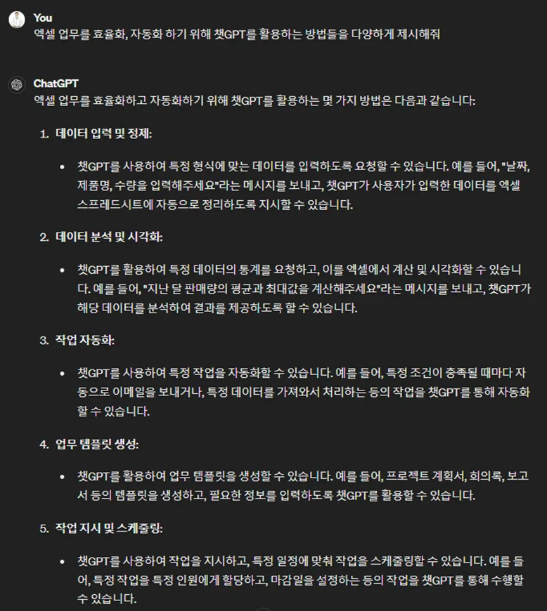 GPT의 사전학습(Pre-trained)에는 엑셀도 다 들어가 있습니다.
