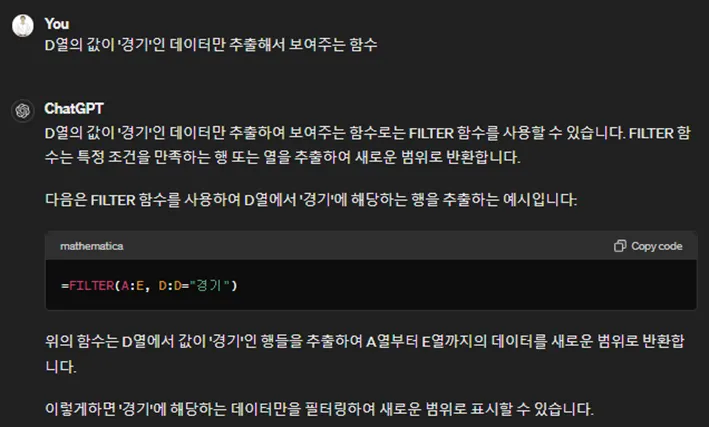 GPT가 함수를 만들어줄때는 항상 Copy code 버튼도 같이 보여주네요.