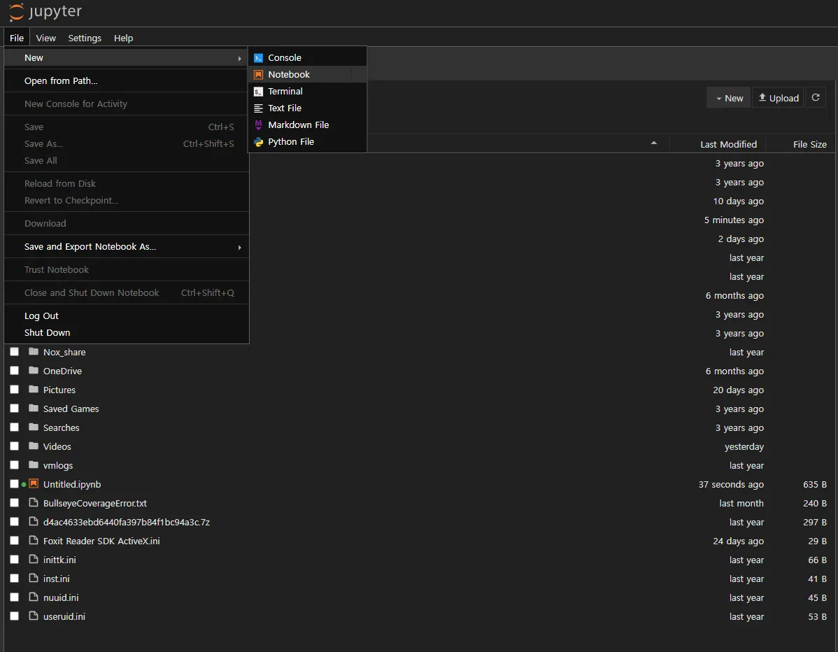 jupyter notebook 실행