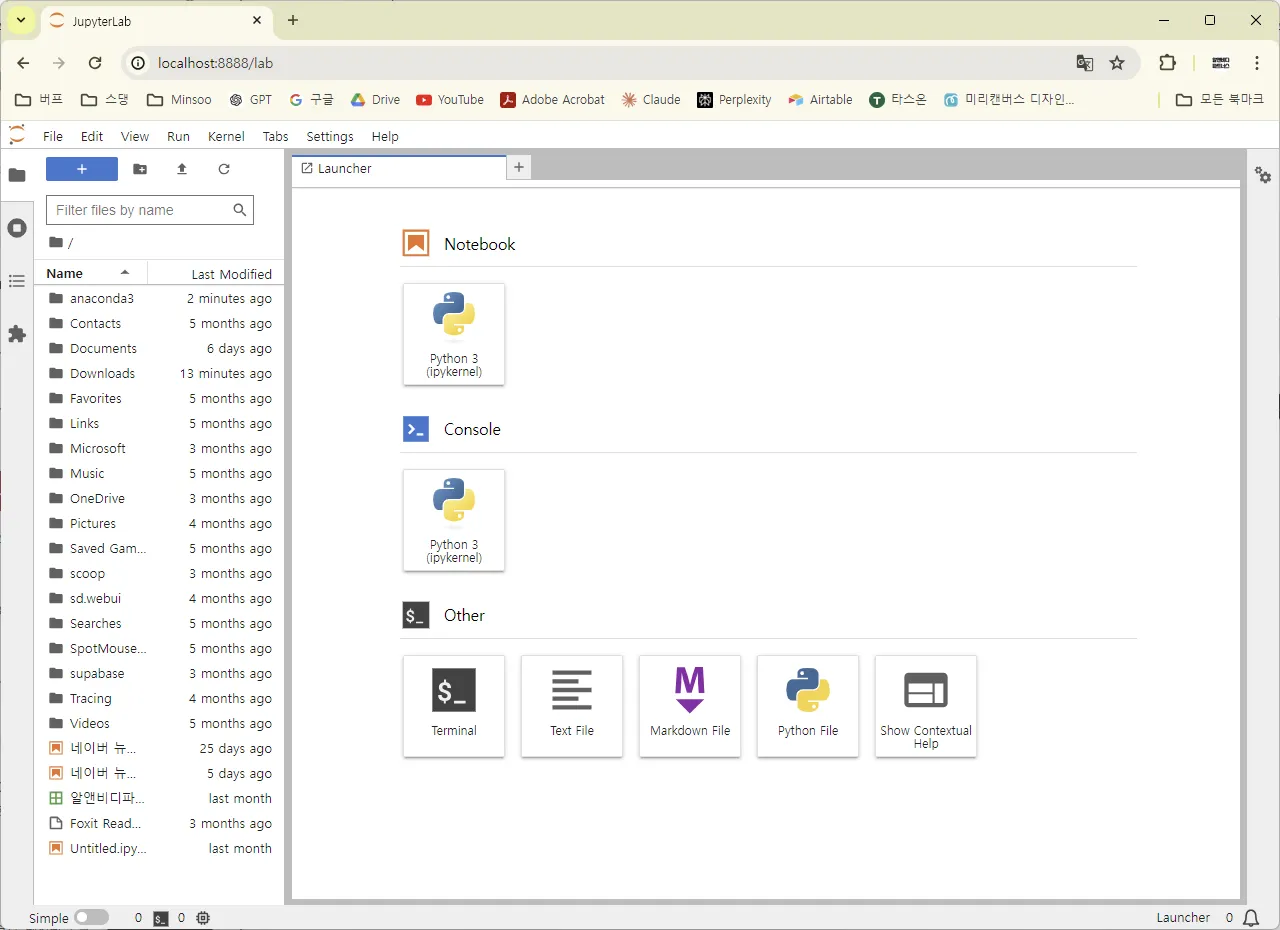 크롬 브라우저에서 주피터 랩이 실행됨