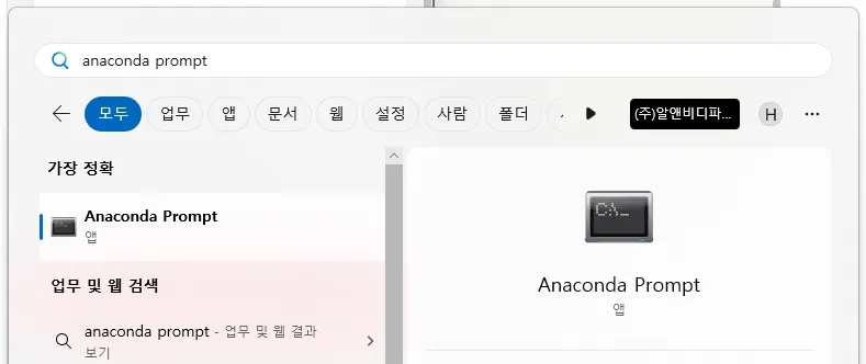 윈도우 버튼 누르고 Anaconda prompt 검색