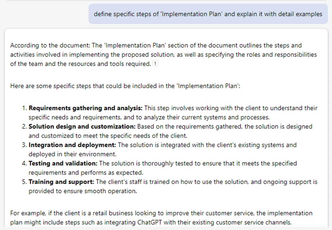 프롬프트 : define specific steps of 'Implementation Plan' and explain it with detail examples