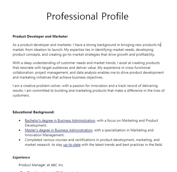 두번째 소스는 코파일럿이 만들어준 전문가 Profile입니다.