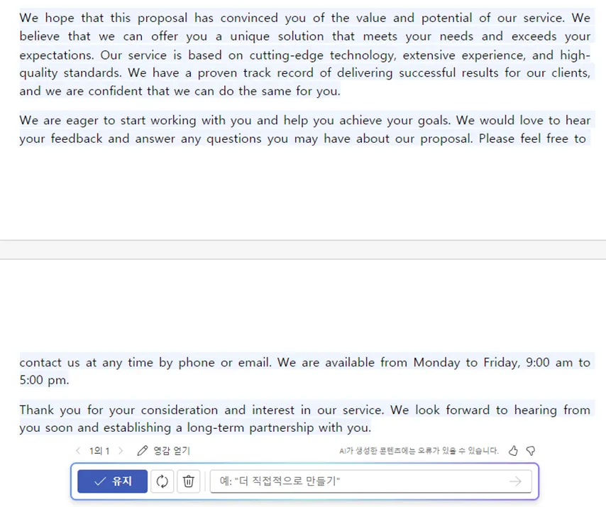 한번에 모두 만족스런 내용만으로 생성되긴 어렵죠. 이런 부분 편집 기능은 참 편리합니다.