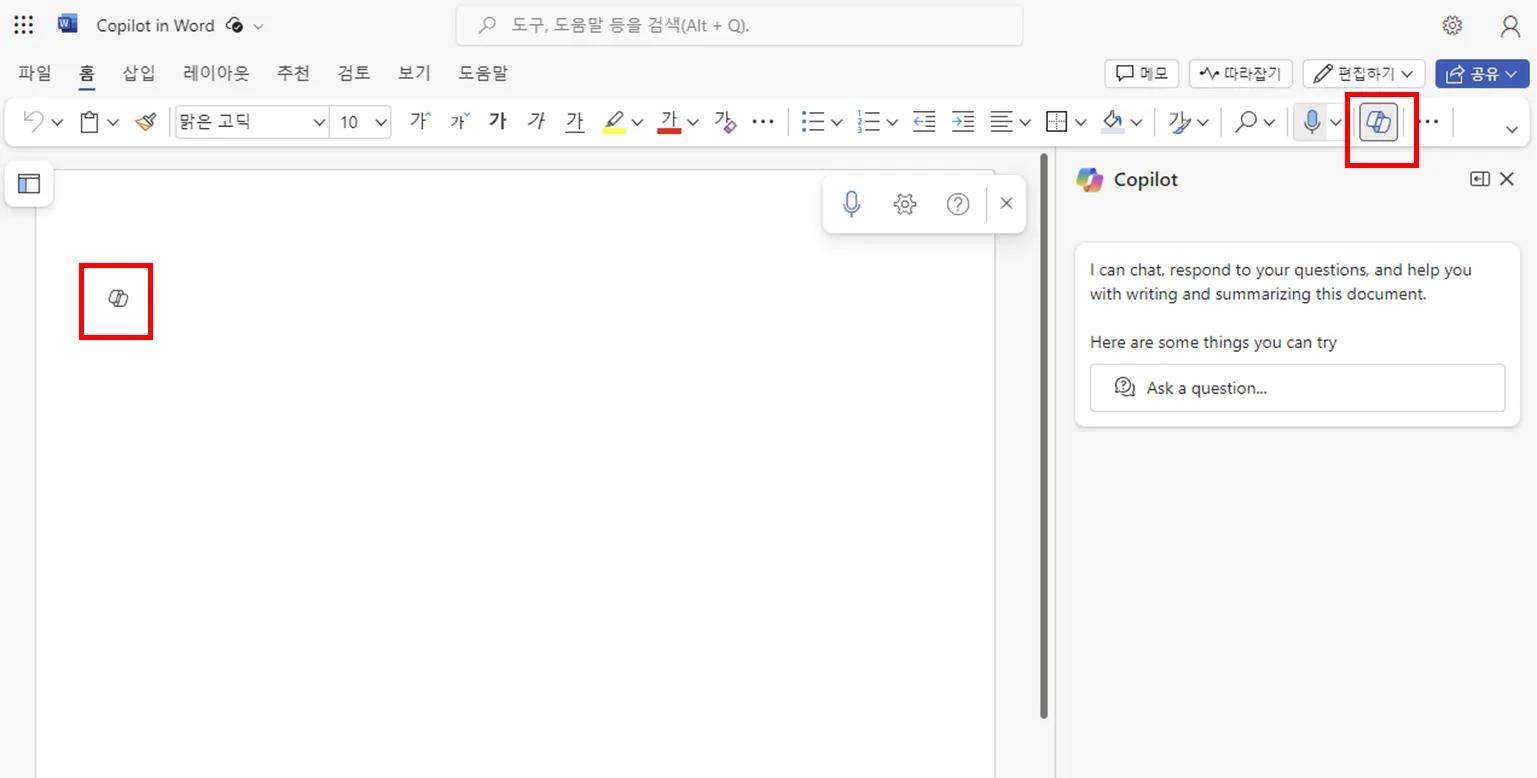 둘 다 구독을 하면 Word 문서 자체에서 Copilot 메뉴가 활성화되어 나타납니다.