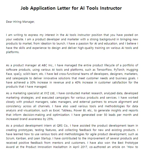 프롬프트 : draft a Job application letter for this job /첫번째파일 based on my resume /두번째파일