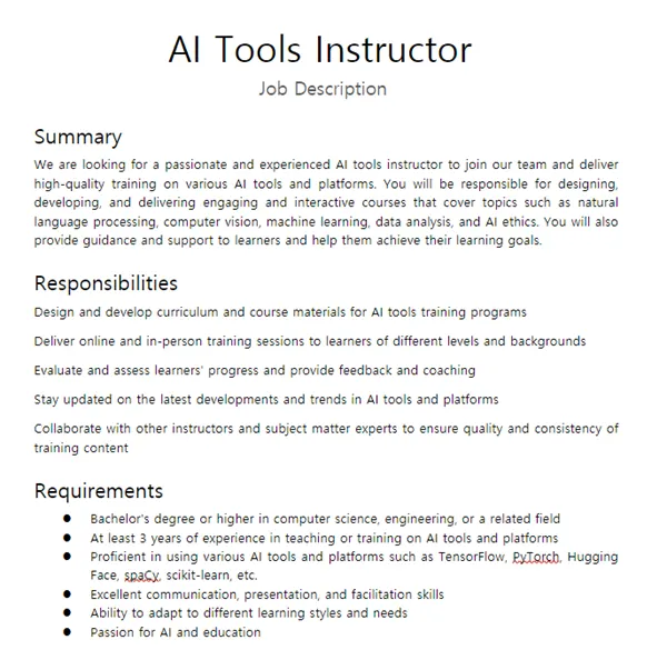 첫번째 소스는 코파일럿이 만들어준 Job description이구요,