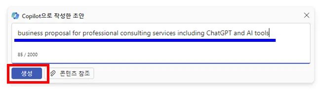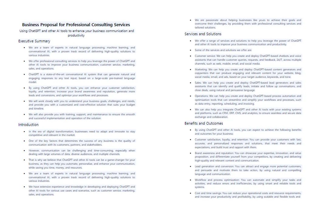 프롬프트 : business proposal for professional consulting services including ChatGPT and AI tools