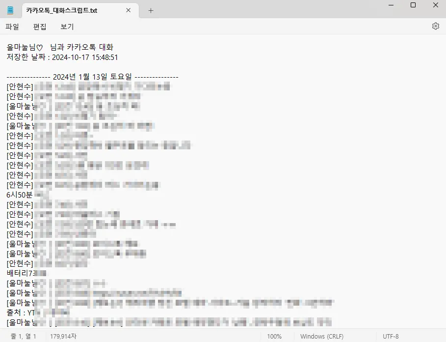 이 카톡 대화가 무려 9개월치이기 때문이라고 생각됩니다.