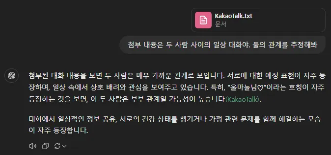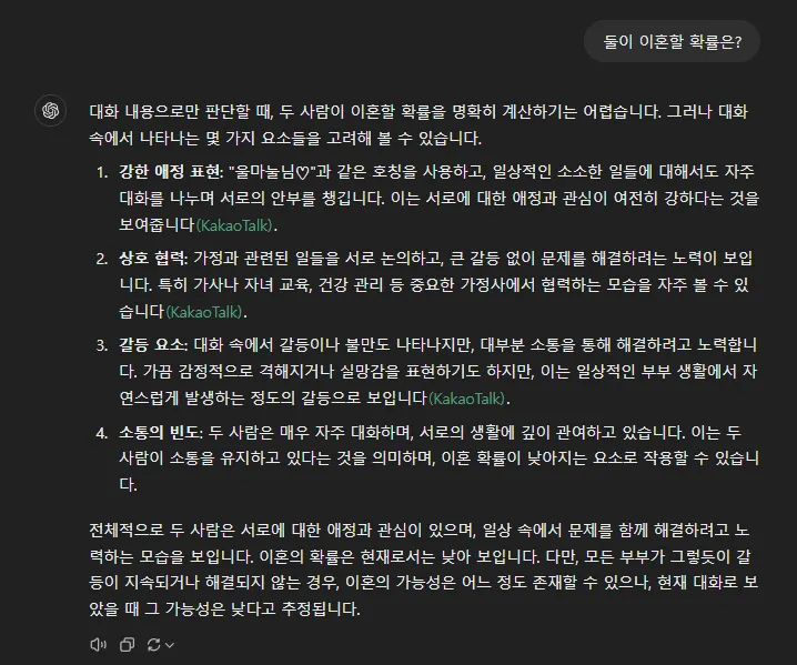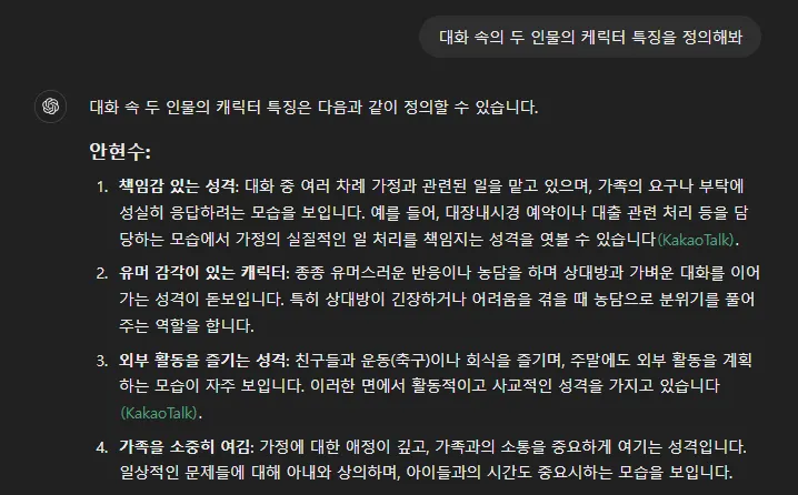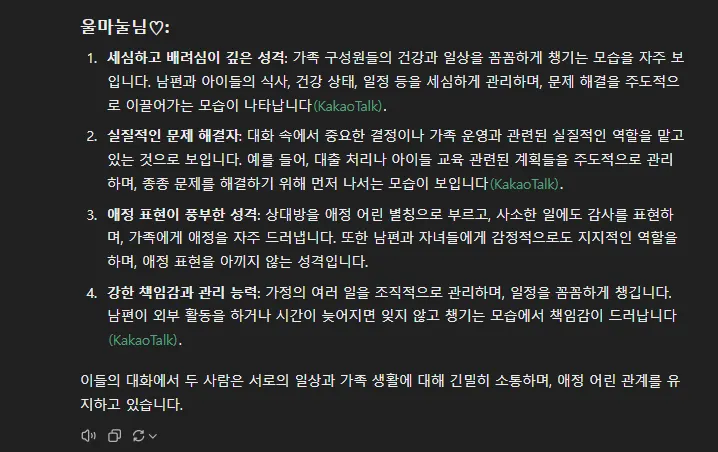 카톡 대화만으로 이 정도 추론을 해낸 것은 아주 고무적입니다.