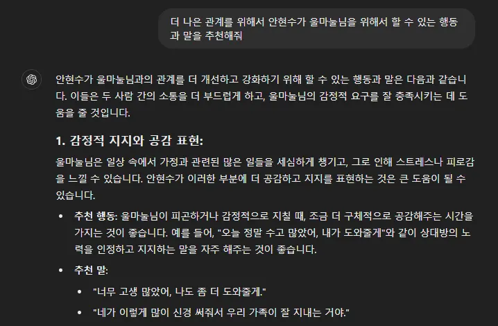 GPT 상담사에게 본격적으로 조언을 구해봅니다.