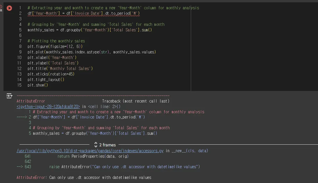 그런데 유독 시계열 분석에서 계속 오류가 발생하더라고요.